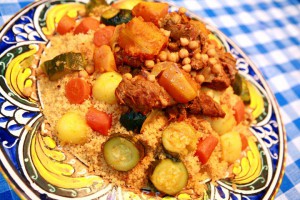 Anche il momento in cui ci si siede finalmente a tavola, i piatti vengono serviti sempre con le stesso rituale. Prima il cous cous, poi i ceci, le cipolle, l’agnello (per chi lo vuole), le patate, le carote e infine il sugo piccante.